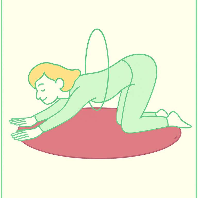 Aus dem Vierfüßlerstand heraus strecken Sie die Hände soweit wie möglich nach vorne. Hängen Sie mit dem Oberkörper möglichst weit durch. Dann machen Sie wiederum Ihre kreisende Übung in Zwerchfellhöhe. Wie üblich, fünfmal links- und fünfmal rechtsherum.